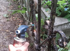 Мы обожгли и зачистили ограду. Для обжига мы использовали пропановые горелки, для зачистки стальные щетки и электрические болгарки.